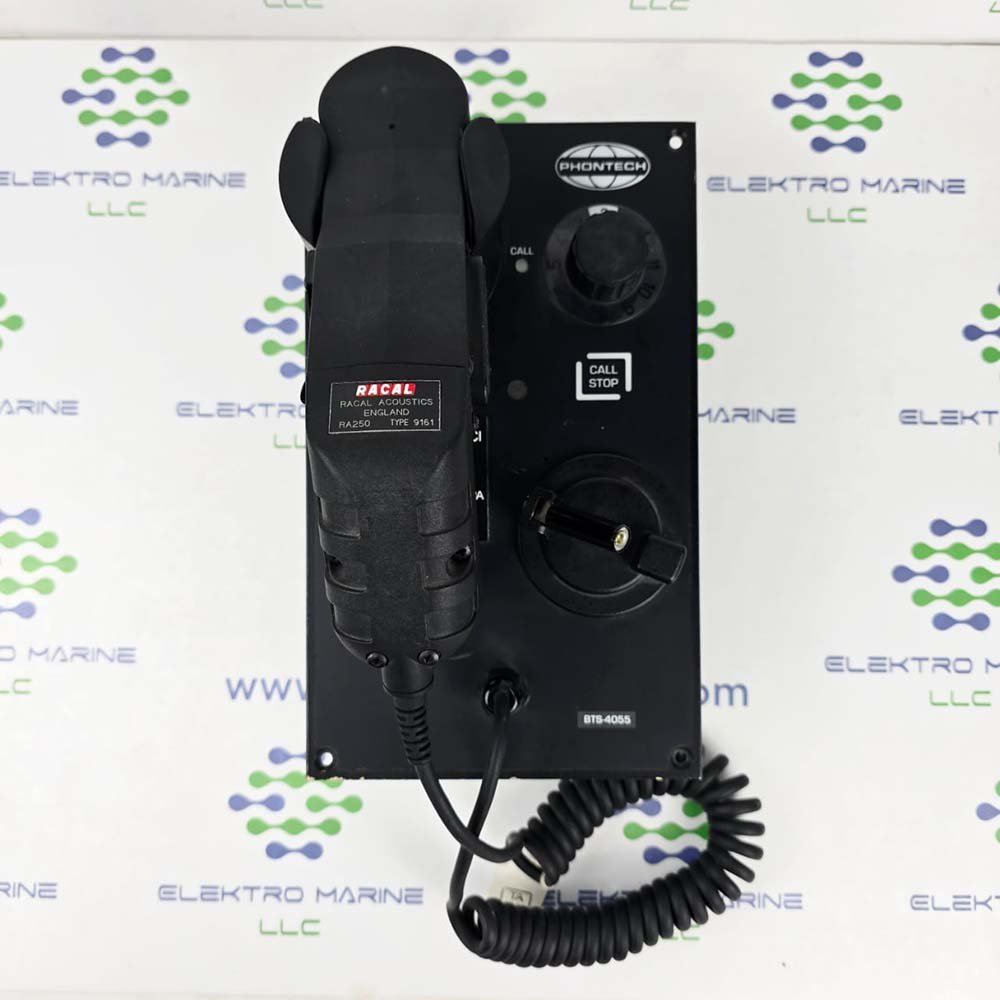 Phontech BTS-4055 is a weatherproof telephone handset unit designed for use within the Phontech BTS 4000 series batteryless (sound-powered) emergency telephone system, typically in marine or industrial environments.